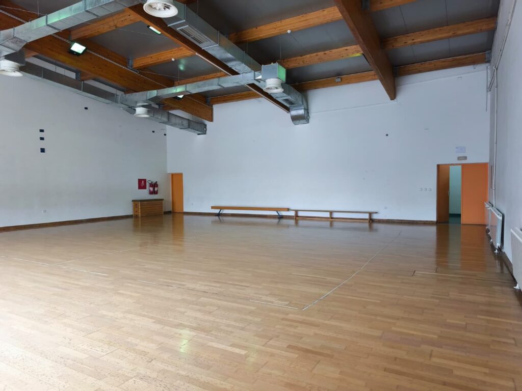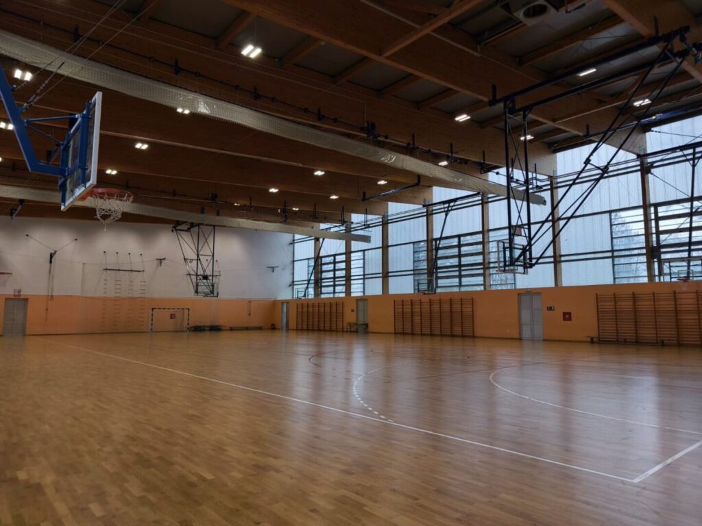 Dvorana se sastoji od dvije cjeline: velike i male dvorane. Velika dvorana prostire se na 1.216 m² i raspolaže s 350 sjedećih mjesta, što omogućuje organizaciju većih sportskih događanja, turnira i školskih manifestacija. Mala dvorana, površine 202 m², pogodna je za rad u manjim skupinama, treninge i rekreativne aktivnosti.